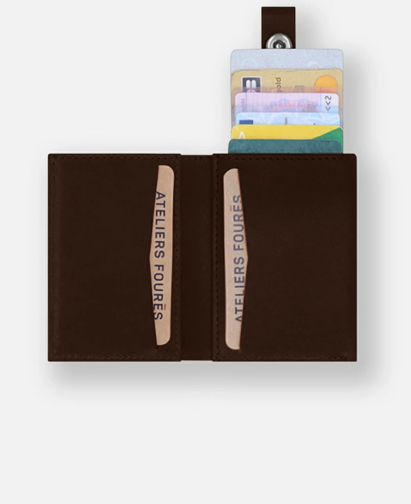 Aux Ateliers Fourès, nous vous proposons des porte-cartes en cuir haut de gamme pour homme. Ces produits sont faits à la main avec le plus grand soin en France, dans notre atelier de Graulhet.Nos porte-cartes sont conçus pour durer, avec des matériaux sélectionnés avec attention et une fabrication artisanale méticuleuse. De plus, ils sont dotés d'un design élégant et épuré, qui s'assortira à tous vos looks. Achetez nos porte-cartes en cuir pleine fleur pour homme et bénéficiez de notre garantie de satisfaction à 100%. Si vous n'êtes pas satisfait, renvoyez-les pour un remboursement intégral.Ne cherchez plus et commandez nos porte-cartes en cuir pleine fleur pour homme dès aujourd'hui.