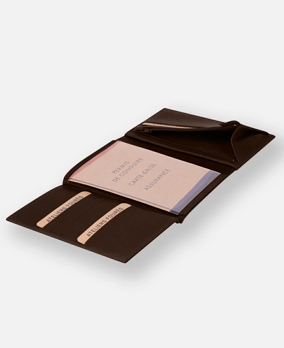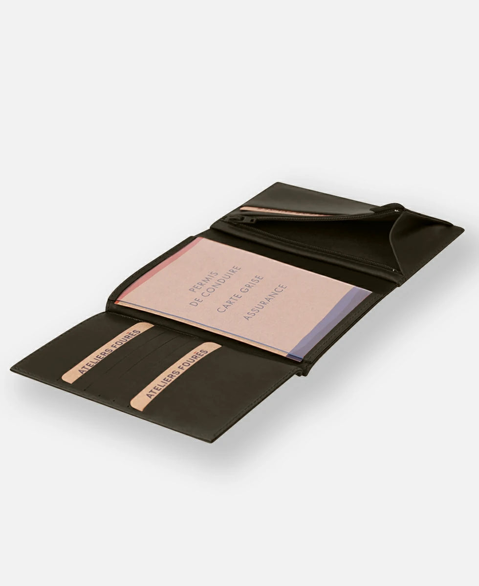 Platon grand portefeuille à rabat, l’élégance dans sa plus grande expression. Conçu pour accueillir sans effort tous vos essentiels, il conjugue raffinement et générosité.