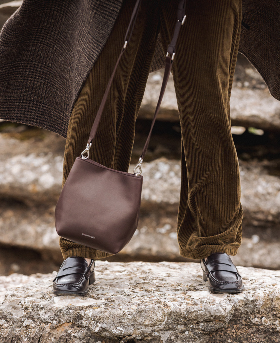 Alceste, notre nouveau sac seau au design élégant et affirmé, rehaussé d’un cuir pleine fleur au toucher naturel et à la brillance subtilement satinée.