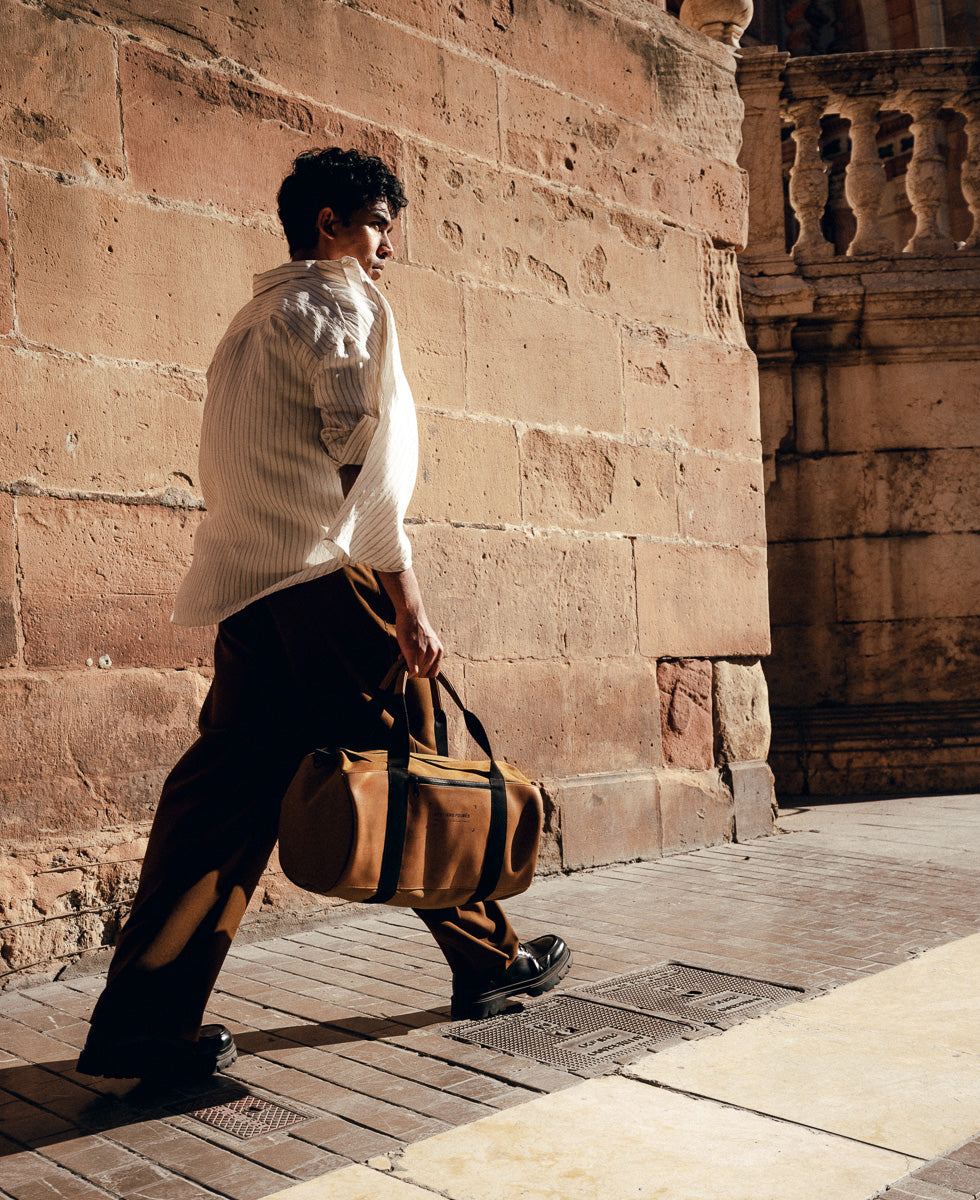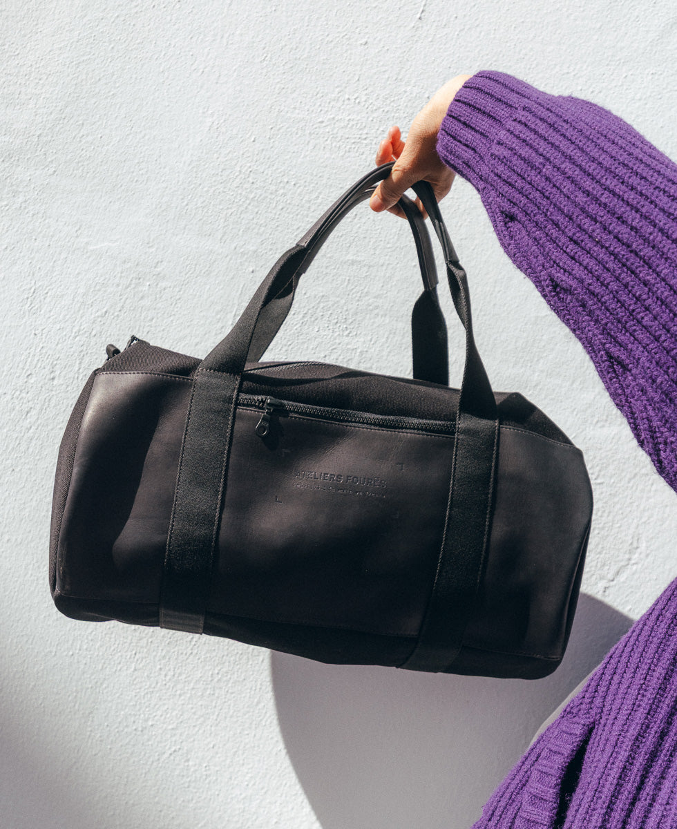 Aristote sac week-end, une silhouette souple et structurée, mêlant toile robuste et cuir pleine fleur, pour accompagner chaque départ avec allure. Léger, spacieux, toujours prêt à suivre le mouvement.